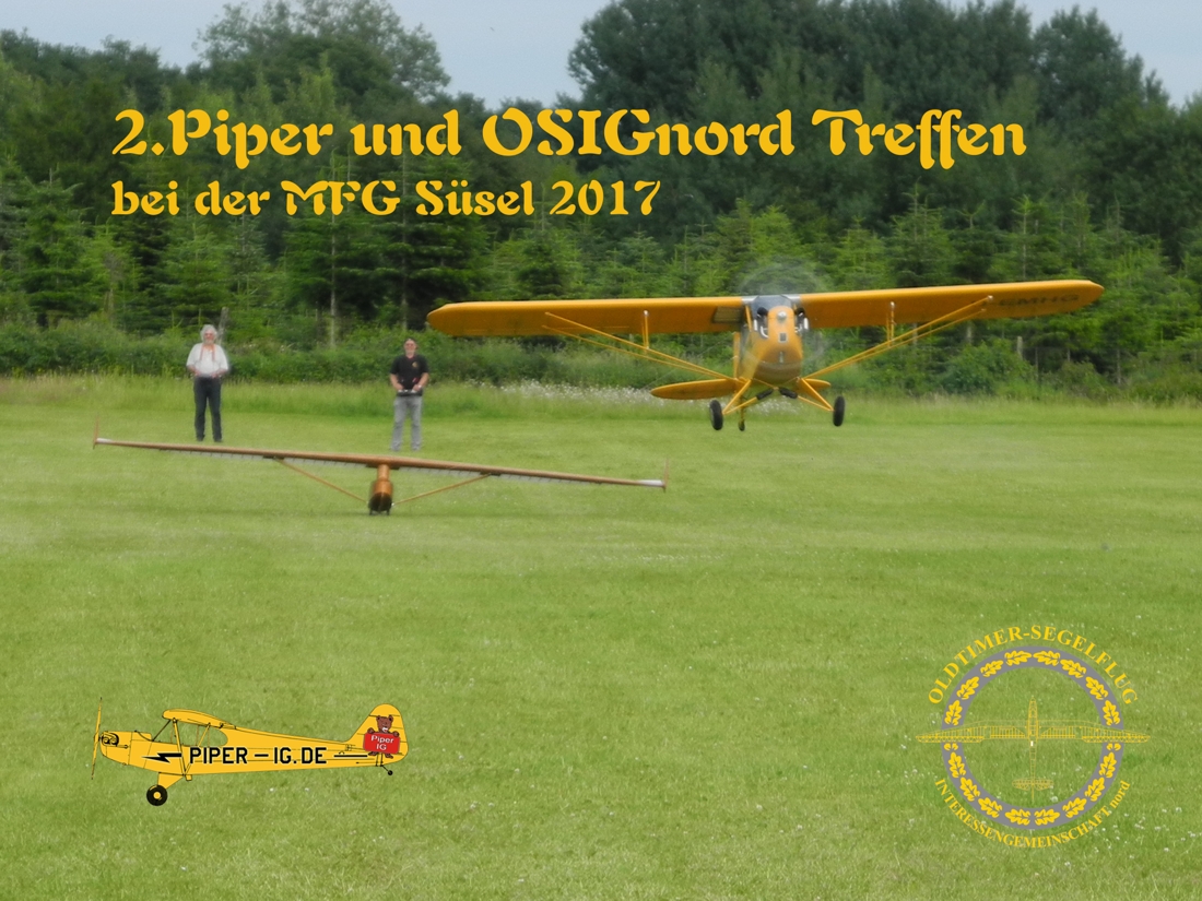 MFG Süsel. Am 02. und 03. Juli war es soweit, die MFG Süsel hatte zum zweiten Piper und OSIG Nord Treffen geladen. vereinzelt die Sonne, das Wetter wurde immer besser und es konnte der Flugbetrieb aufgenommen werden. Es wurde sehr viel geflogen und die Piper`s brachten einige Oldies in die Luft. Ein ganz besonderes Highlight war wohl die die Taufe Ufo seiner neu Aufgebauten Piper, Olli hatte dafür extra große Aufkleber gefertigt , sie sieht jetzt wunderschön aus! Die Gastfreundschaft des Süseler`s Vereins wurde wieder mal ganz groß geschrieben und wir wurden wieder hervorragend bewirtschaftet. Ein großer Dank geht auch an Ufo und seiner Carola. Am Abend ging es dann zum gemütlichen Teil über, es wurde wieder viel gefachsimpelt, Videos und Bilder aus vergangenen Tagen geguckt und bestaunt Wir hatten aber trotzdem ein Paar sehr schöne Stunden und ich muß sagen, trotz des Wetters, bin ich mit meinem Lippisch Storch Marabu voll auf meine Kosten gekommen und konnte ein Paar sehr schöne Flüge machen. Was bleibt zu sagen: Wir kommen immer gerne wieder nach Süsel! Euer Olli Bilder: Ufo Nieske, Manfred Münster, Oliver Theede |