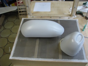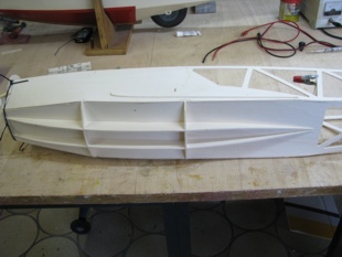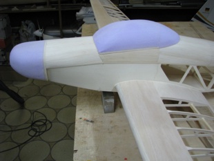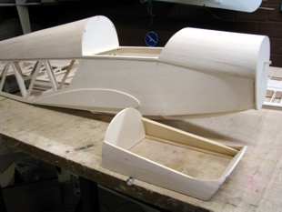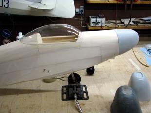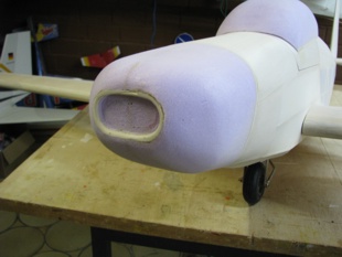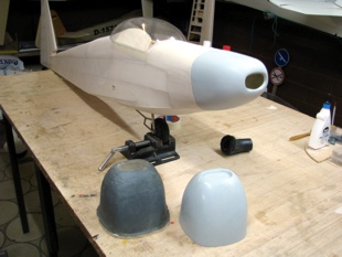 mehrfach geschliffen, gespachtelt und grundiert. Für die Motorhaube habe ich eine GFK Form hergestellt in der vor dem Einlegen des Gewebes die Motorhaube gleich grundiert wurde. Der Rohling für die Kabinenhaube wurde noch vor dem Tiefziehen hochglänzend rot lackiert (auf den Bilder nicht zu sehen). Danach wurde dann die Kabinenhaube gezogen |