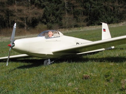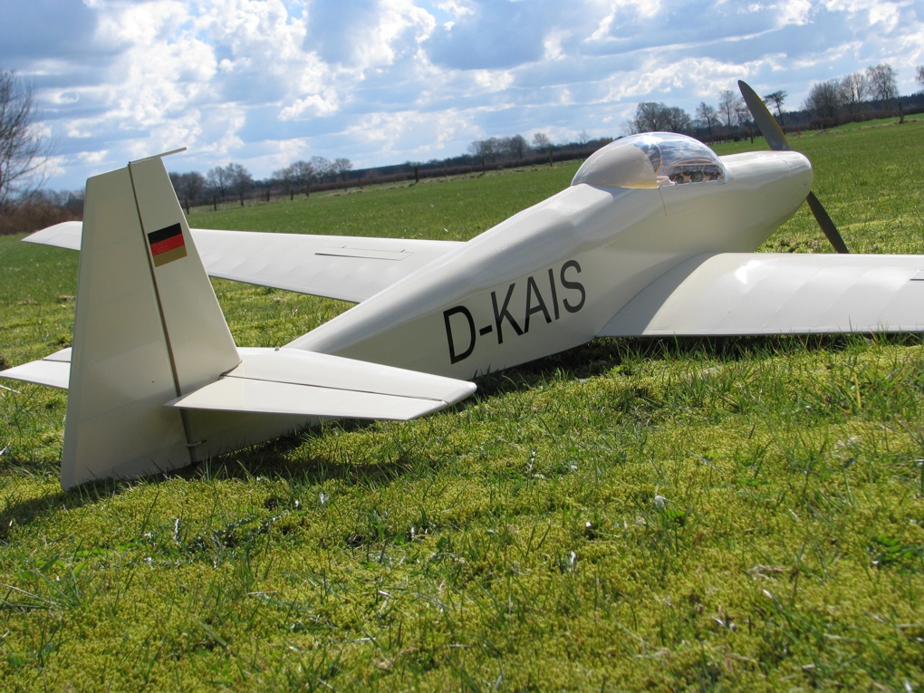 Kaiser K11 gilt als Vorgänger der K14. Kaiser konstruierte die Maschine aus den unterschiedlichsten Flugzeugtypen die aus seiner Feder stammten, so nahm er in abgeänderter Form wie Verstärkung der Holme und Vergrößerung der Spannweite die Tragflächen der K9, für das Höhenleitwerk, dass der Ka8 und das Seitenleitwerk der Ka6. Der Rumpf ist ein Stahlrohrgerüst mit einigen Änderungen an die vorhandenen Teile, es ist zum Teil mit Holz beplankt und mit Stoff bespannt. Die Maschine mit der Kennung D-KAIS erhielt am 3.März 1966 ihre Musterzulassung und wurde ausschließlich bei Schleicher gebaut. Der Ursprünglich geplante Motor Solo 560A IIa wurde dann doch noch gegen einen Hirth F104 Motor getauscht. Daten zum Original Spannweite: 12,84 m Rumpflänge: 6,50 m Flügelfläche: 12,84m² Leermasse: 200 Kg Hubraum : 570ccm Startleistung: 25 PS |