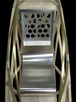 Rückenlehne aus Litublech und 2mm Sperrholz.