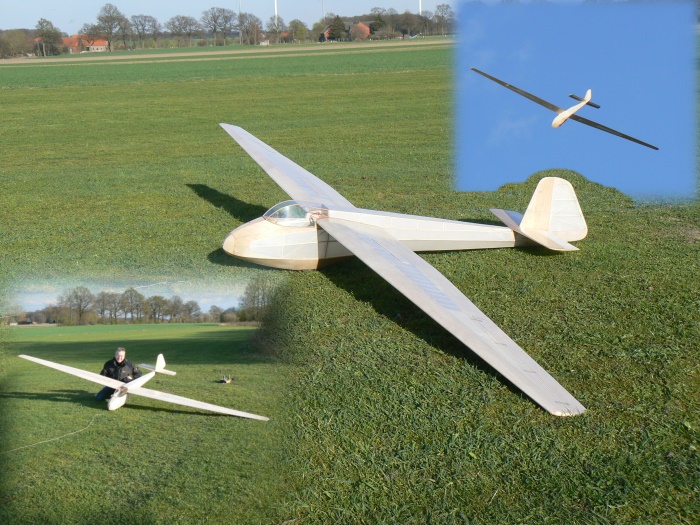 Rippenfläche (Sperrholz Balsarippe) mit 3mm Balsaholz beplankt. Bespannung Oratex