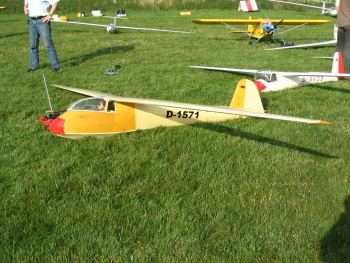 Am 28.08-29.08.2004 fand bei den LVO-lern zusammen mit der IG-Segelflug das diesjährige Großseglertreffen statt. Ich konnte leider nur am 28.08 teil nehmen, aber nichts des zu trotz : Es wahren ca. 30 Piloten an den Start gegangen. Trotz anfänglich starken Cross Windes ließen sich die Piloten nicht davon abhalten ihre Großsegler zu starten. Die Thermikbedingungen wahren ausgezeichnet, sodass z.B. Erich Schatz mit seiner ETA einen Thermikflug von 2 Stunden hinlegte. Es waren einige Orchideen am Himmel zu sehen, aber ich glaube fast, dass die Oldies in der Überzahl wahren. Am Nachmittag legte sich der Wind und es konnten sehr schöne Flüge mit Grunau, Spatz, K6 und Co. gemacht werden.