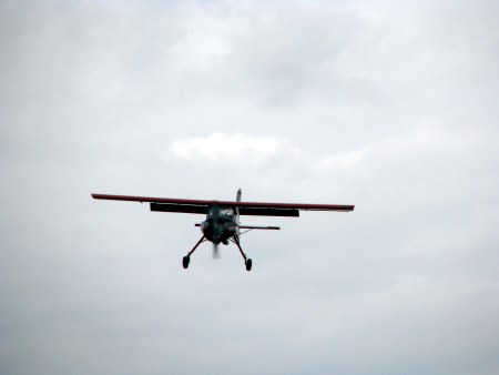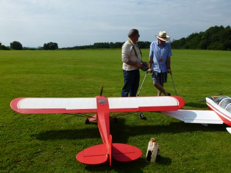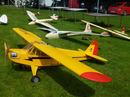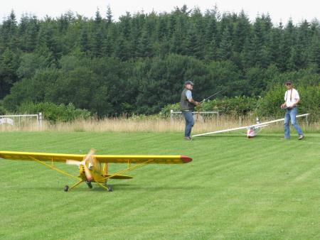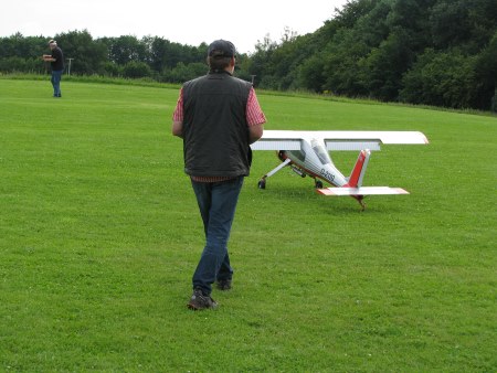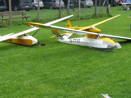 Das Wetter spielte bis auf einige Schauer prächtig mit, der Wind war kaum zu spüren und es konnte selbst bei bedecktem Himmel großflächige ausgedehnte Flüge vorgenommen werden. Das Highlight des Samstags war wohl der Erstflug von Manfred Münster seinem Reiher III mit 6,33m Spannweite. Mein Highlight war es wohl, dass ich endlich Thomas Hanusch kennen lernen durfte, der die Ka3 D-7712 im Original restauriert hat, er kam von Bad Neustadt. Der Abend klang dann vor Lars Wenkel seinem Wohnwagen aus, bei Grillgut und ordentlich Schlepper-Whisky den Uli und Beate mitbrachten. Um ca. 1°° Uhr ging es dann zu Bett, da ein schweres Gewitter aufzog.
