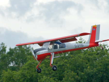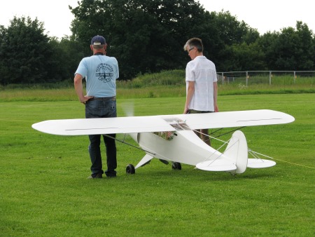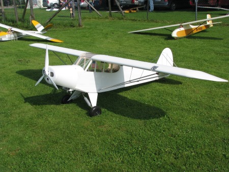 Heiko Mast war ganz von Sankt Peter-Ording rüber an die Ostsee gefahren, um mit seiner großen Frisch Wilga zu schleppen. Motorisiert ist sie mit einem 140ccm King Motor |