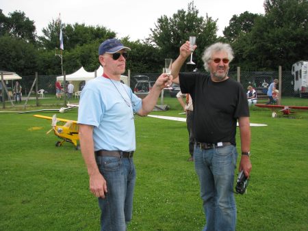 Manfred nach seinem geglückten Erst-Flug "Prost Manfred und Uli" | |