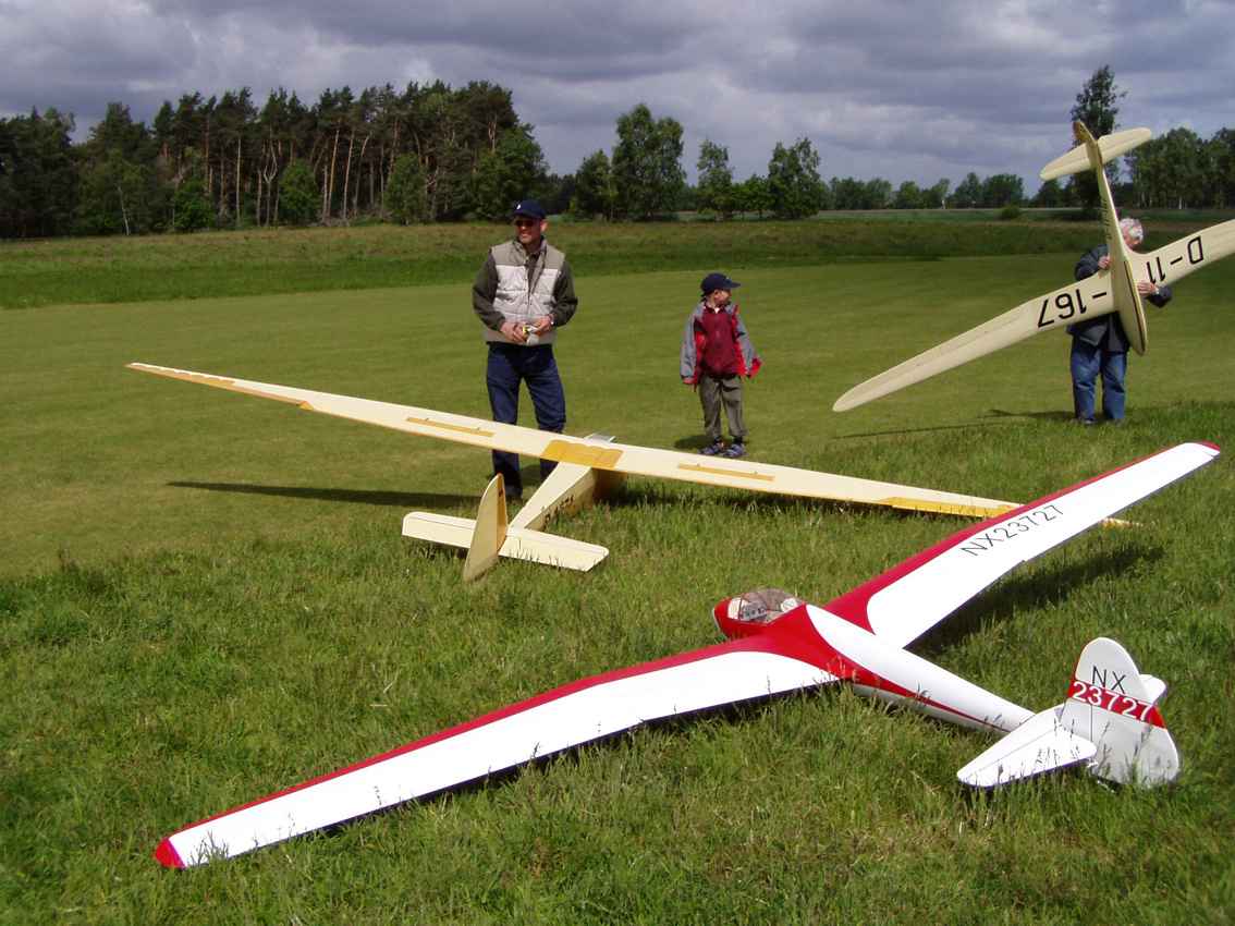 Am 20.05-23.05.2004 fand in der Ahnsbecker Heide beim Modellflugclub Lachtetal www.modellflugclub-lachtetal.de das diesjährige OSIG Treffen ( Oldtimersegelfluginteressengemeinschaft ) satt. Die Wettervoraussicht stand vor der Anreise eigentlich nicht schlecht, jedoch war das Wetter vor Ort sehr durchwachsen, aber mit den Seglern der größeren Klasse war dies nicht so sehr das Problem und Piloten konnten am Nachmittag doch noch einige schöne Thermikflüge durchführen. Bedanken möchte ich mich noch beim FMCL Ahnsbeck für die super Gastfreundschaft und bei Herrn Wolfgang Wölck für die super Organisation und hoffe, dass wir uns nächstes Jahr alle wieder sehen.