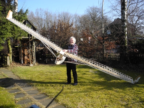 seinen Lippisch Storch V in M 1:3 gebaut hat und